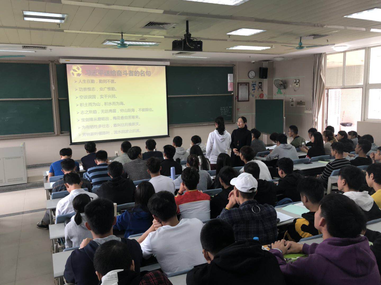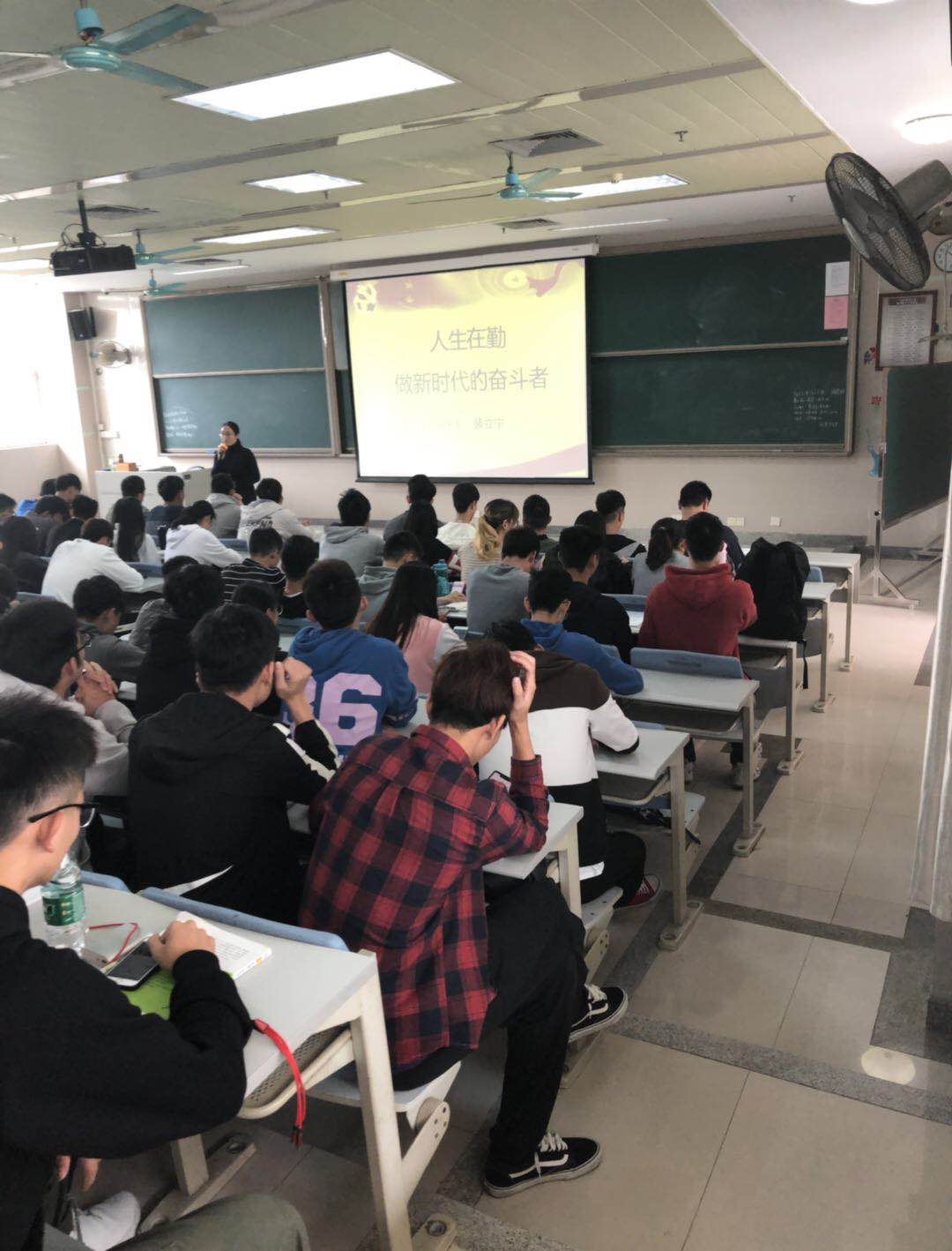 同学们心潮澎湃,深切感受到习总书记对青年人的期望和谆谆教诲。裴老师还以我们身处粤港澳大湾区和一带一路的重要枢纽城市,引导大家学习和了解国家战略和政策,在时代的大潮流中,做好自己的人生目标和规划,“人生在勤”,为未来的就业创业等寻找先机。裴老师说,我们有幸生在这样一个伟大的时代,身处这样一个最具生机和活力的土地上,不但是见证者,必须成为实践者,用勤劳、勤学、勤奋,为我们的青春涂上奋斗的底色。