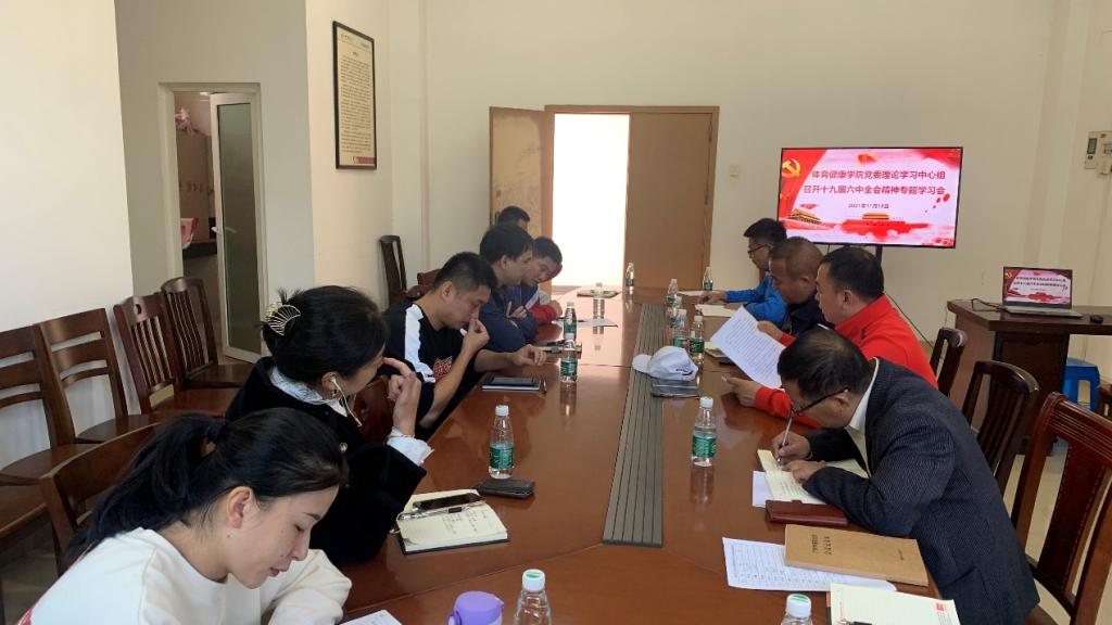 11月18日上午,学院理论学习中心组召开十九届六中全会精神专题学习会,传达与学习贯彻党的十九届六中全会精神,体育健康学院李兆伟副院长主持会议并领学《中共中央关于党的百年奋斗重大成就和历史经验的决议》。