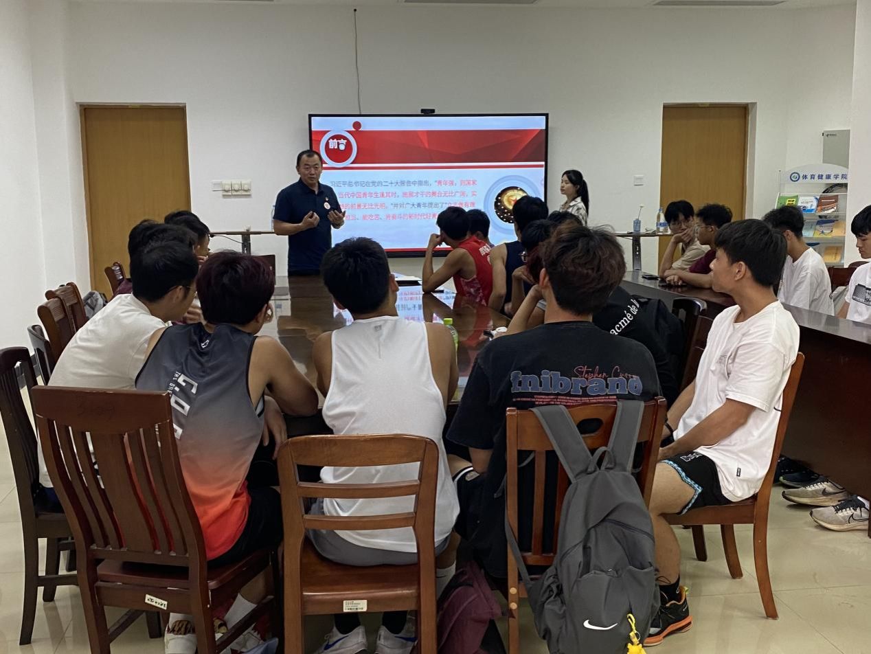 体育健康学院副院长李兆伟为2022级2班讲授专题党课