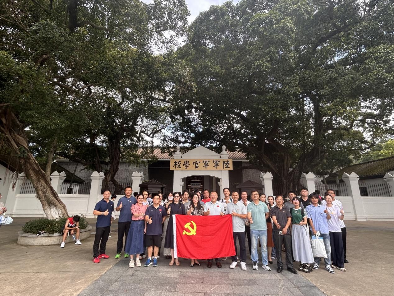 为深入学习贯彻习近平总书记重要讲话和重要指示精神,庆祝中国共产党成立103周年,全面推进党纪学习教育走深走实,引导党员干部坚定理想信念、筑牢信仰之基,进一步强化党员的党性教育,继承和弘扬“爱国、革命”的黄埔精神,7月4日下午体育健康学院党委组织全体教工党员赴黄埔军校开展爱国主义主题党日活动。