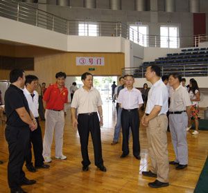 8月18日上午,省教育厅厅长罗伟其一行来到我校,视察第八届广东省大运会武术比赛场地筹备工作情况。学校徐志伟校长、林培政副校长,校长办公室林辉主任,体育健康学院宋述财书记、李兆伟副院长等陪同视察。