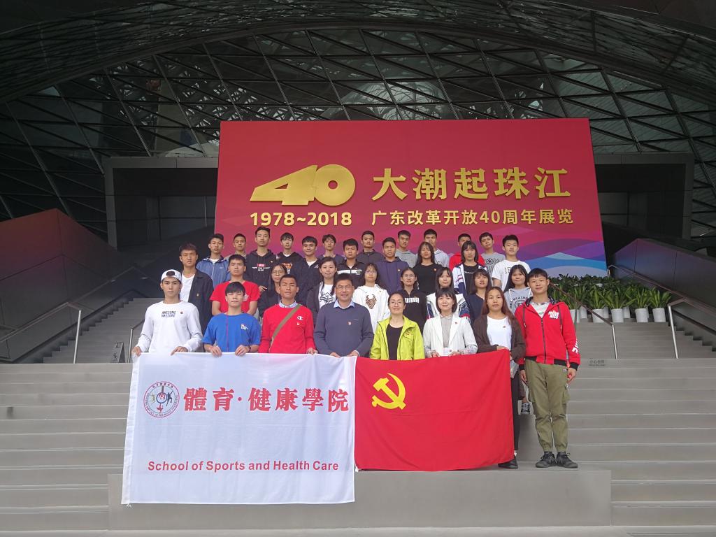 2019年4月13日,为了进一步学习贯彻习近平总书记视察广东重要讲话精神,深入感受改革开放四十周年的成就,开展爱国奋斗教育,体育健康学院团委组织团学干部赴深圳参观“大潮起珠江――广东改革开放40周年展览”、到莲花山邓小平塑像缅怀一代伟人,开展“纪念改革开放40周年――爱国奋斗教育”主题团日活动。体院党委书记裴立宁亲临指导并参加了全程活动。