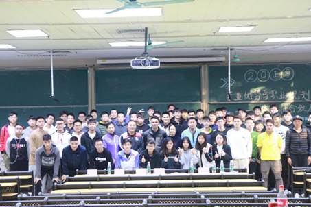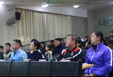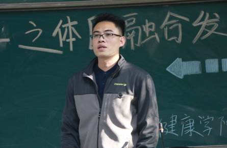 2019年12月20日15时,体育健康学院2017级3班、4班“专业优势与职业规划之体医融合发展”主题班会在综合楼104举行。为帮助同学提早认知自我,提升我院学生的职业规划意识,确定科学职业目标,提升就业能力。受2017级3、4班班主任王媛老师及班委的邀请,2009届体育教育专业毕业生吴石寿师兄回校做关于“专业优势与职业规划之体医融合发展”的主题讲座。吴石寿,曾为国家游泳队队医,是奥运冠军焦刘洋的专职队医。 他用生动地案例与我们分享其在校期间如何学习,如何将所学知识与实践工作相结合的宝贵经验。我院党委书记裴立宁、党委副书记杨麟、游泳专项老师刘晨、王媛莅临指导。