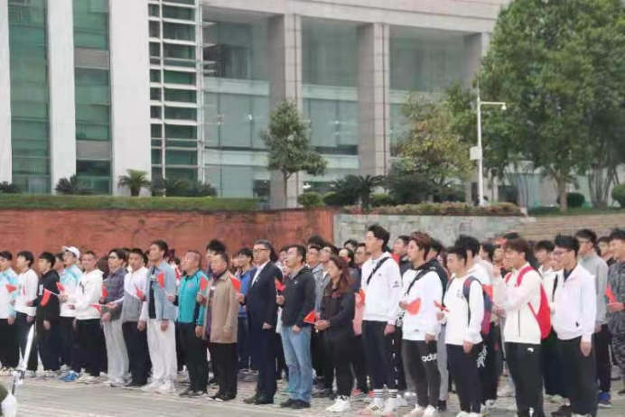 3月22日上午,体院健康学院在我校博物馆前举行中国共产党建党100周年升旗仪式,学院党政领导及全体师生生五百余人出席升旗仪式。