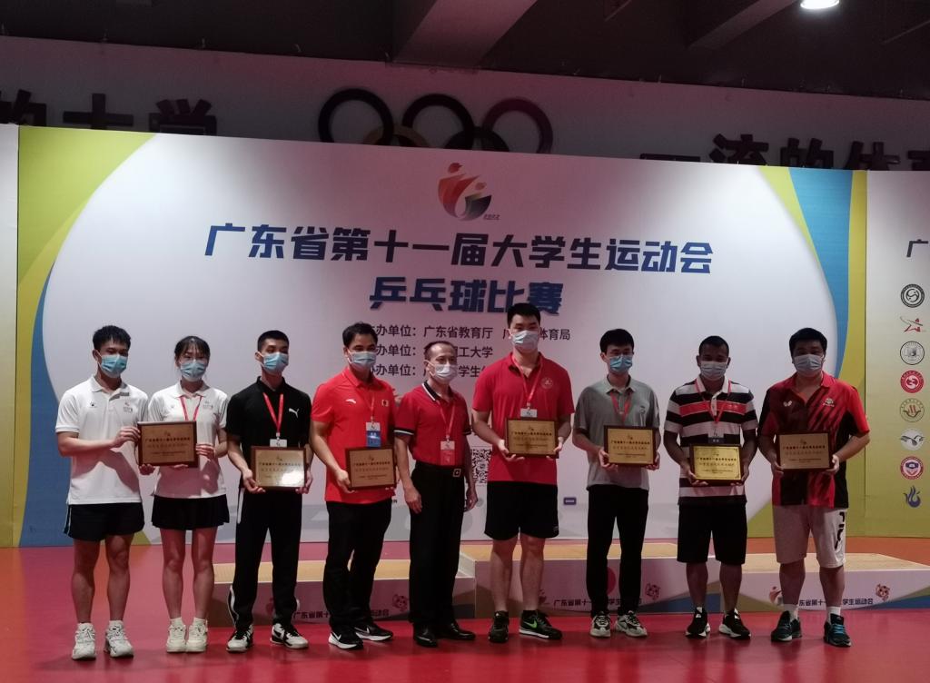 5月26日广东省第十一届大学生运动会乒乓球比赛在华南理工大学(五山校区)举行,我校乒乓球队乙A组9名队员在李兆伟副院长、陈月斌教练的带队下参加此次比赛。