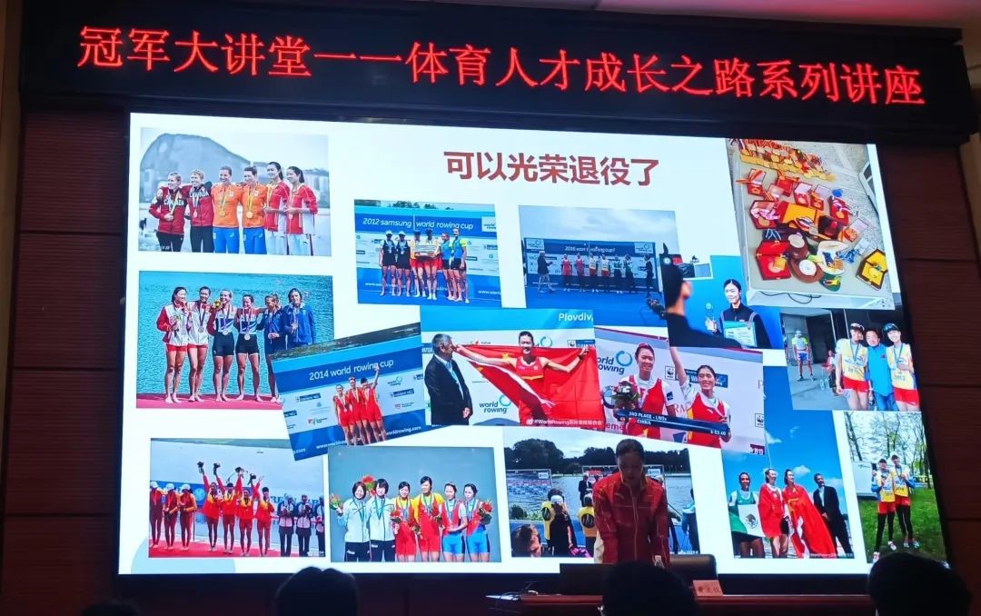 此次讲座在与同学热烈的互动中结束,深受学生喜爱与欢迎,现场掌声如雷,黄老师以她的赛艇生涯向我们展现了中国赛艇人坚持的力量,通过此次冠军大讲堂,让我们学会了脚踏实地,仰望星空,学会了勇敢与坚持,让我们心有猛虎,细嗅蔷薇,以活力为旗,用青春作注,拼一个无悔的人生!