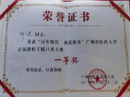 6月22日,学校工会举办了“百年校庆 我说我秀”伟德bv1946官网首届教职工脱口秀大赛。郑健教授代表体院出赛,经过激烈比拼,在15位参赛选手中脱颖而出。他以幽默的语言和稳重的台风,最终以92.70的高分夺得了第一名的优异成绩!