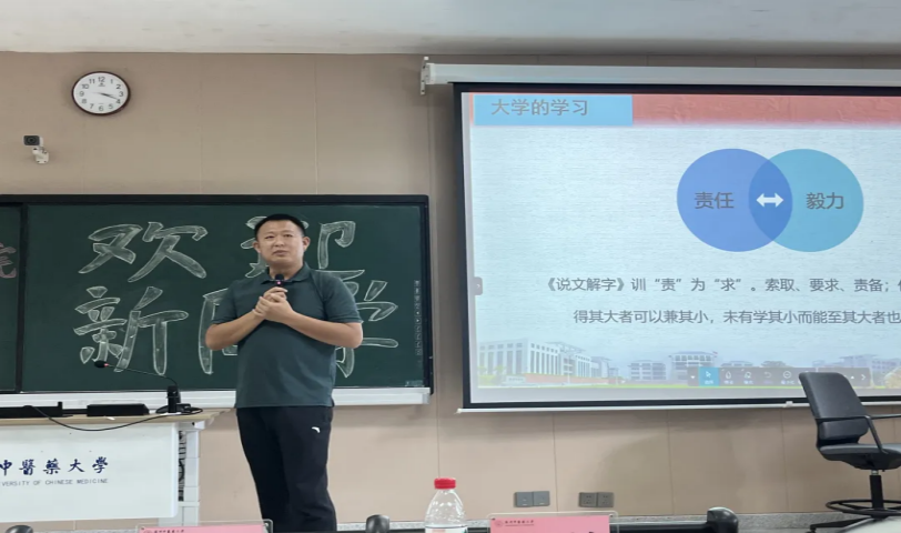 学院学工办主任焦润艺老师为新生作“专业第一课” ,帮助新生们更好地规划自己的大学生活。他结合具体案例,深入浅出地讲解了专业知识在职业发展中的应用价值,引导新生们思考个人兴趣、能力与未来职业的契合度,鼓励新生树立正确的职业观和就业观,为未来的职业生涯做好充分准备。