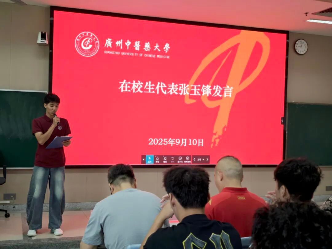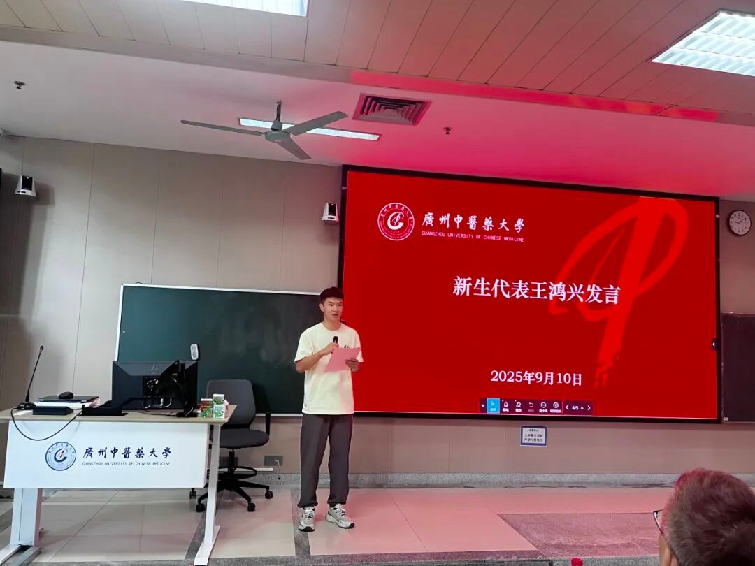 2022级张玉锋作为在校生代表分享了自己在校学习、训练、实践和生活的经验,寄语学弟学妹们既拥有保持好奇的上进心,又拥有能应对挫折的强大内心,既敢于仰望星空,又能脚踏实地,积极融入校园,全面提升综合能力,做扎根向上、德才兼备的广中医人。