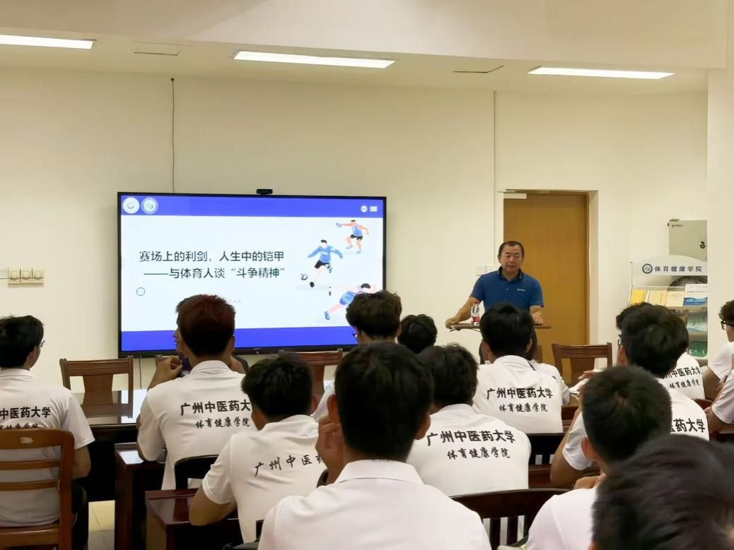 2025年10月11日,体育健康学院院长李兆伟在医科楼B116会议室,为2025级体育教育专业2班全体同学讲授新学期思政第一课。本次课程以“赛场上的利剑,人生中的铠甲——与体育人谈‘斗争精神’”为主题,体育健康学院副院长杨麟、2025级辅导员朱穗棋老师受邀出席。