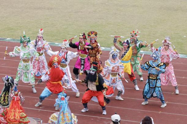 开幕式入场仪式上,伴随着激昂的运动员进行曲,由体育健康学院组成的仪仗队率先登场。学院学子们身着统一制服,手持旗帜,步伐铿锵、精神抖擞,尽显新时代体育人的昂扬风貌。紧随其后的学院学生方阵以传统英歌舞为表演亮点,大家身着传统服饰,手持英歌棒随锣鼓节奏挥棒、顿足、变换队形,动作整齐划一、气势质朴昂扬,既保留民俗文化的厚重感,又传递校园体育的青春朝气,现场师生掌声持续不断。随后,学院教工方阵入场,老师们身着统一运动服,步伐稳健、精神饱满,展现出体育教育工作者的活力与担当。