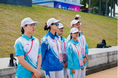 学院共选派33名学生参与全运会志愿服务。他们经过层层选拔和系统培训,服务在竞赛保障、嘉宾接待、观众服务等多个岗位,他们中的15名同学还参与到了开幕式的服务工作中。面对来自不同地区的运动员、观众和工作人员,“小海豚”们始终保持着高度的责任感,用温暖的笑容和贴心的服务,传递着友谊与关怀,成为了赛场上一道亮丽的风景线。