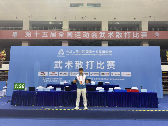除积极投身赛事解说和执裁工作外,体院教师的参与亮点更在于:高晓彬老师以运动员的身份参加了男子长拳刀术棍术全能项目比赛并夺得亚军,展现了扎实的武术功底与出色的赛场表现力。