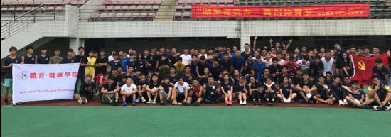 为了培养年级集体团结友爱的品质,增强我们的情商、德商、智商,体育健康学院2016级同学组织了一场别开生面的团日活动——“点燃青春”拔河比赛。拔河比赛。2017年6月13日下午15:00,在学工办主任焦润艺、团委书记魏俊峰、辅导员陈道睿老师的带领下,2016级全体学生140多人,在教学区田径场开始了比赛。