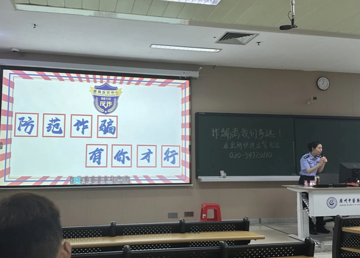 为增强学生的安全意识,筑牢反诈思想防线,5月14日晚,学校保卫部、体育健康学院联合番禺公安反诈中心,在大学城校区综合楼201举办了反诈骗宣传讲座。讲座邀请反诈专家——番禺刑警大队反诈中心二级警长庞彦警官担任主讲嘉宾。小谷围派出所吴高业警官、学院党委副书记桂楠、保卫处综合科科长胡慧、学院学工办主任焦润艺、21级班主任郑健与100余名学生一同参加活动。