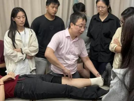 郑老师首先从中医的角度,以中医推拿治疗学基本治则治法,结合临床医学运动系统疾病的功能解剖学、病理生理学方面的基础知识进行讲解。随后,通过一系列临床案例,生动展示了运动系统疾病的诊疗过程。在实践操作环节,郑老师邀请现场多名学生上台体验,亲自展示了各类推拿手法,学生得以在实操中亲身体验推拿功法的独特魅力。
