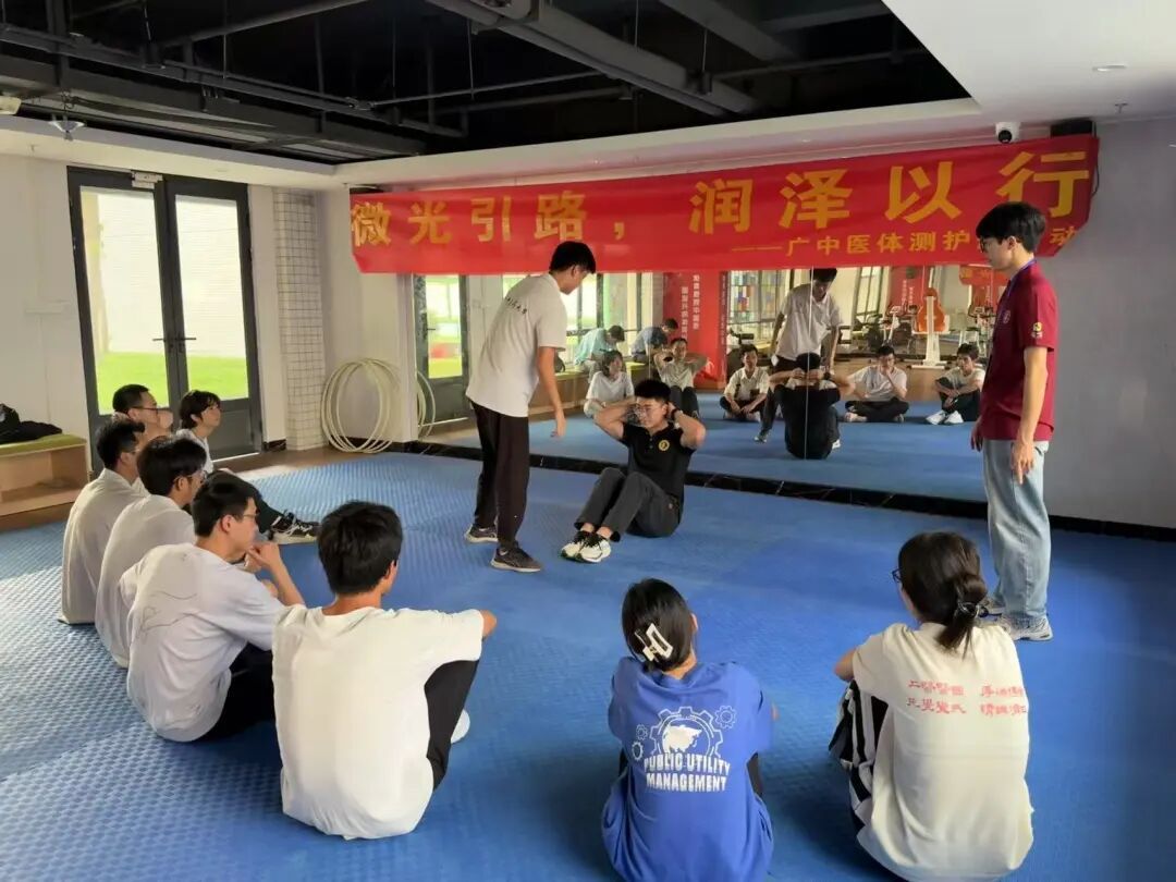 5月8日下午,由体育健康学院主办,体育健康学院学生工作办公室和本科学生党支部共同承办的第三期“广中医体测护航行动”——身体素质专题在大学城校区生活区B栋“一站式”学生社区运动休闲室成功举行。