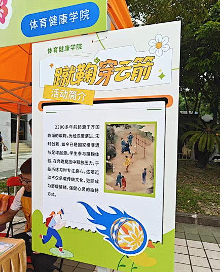 为帮助我校师生充分感受传统体育文化的魅力,在体验活动中舒缓情绪,强健身心,晨曦心理辅导站特设蹴鞠穿云箭摊位开展蹴鞠体验和古风投壶两大特色活动。
