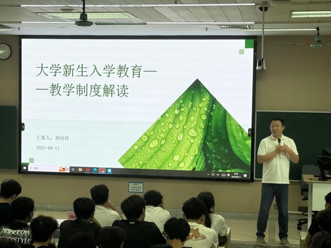 9月11日,教学办主任荆纯祥开展大学教学制度专题讲解。针对体育教育专业新生,荆老师着重介绍了“学什么、怎么学、侧重学什么”的核心问题;同时通过调查问卷了解新生情况与需求,结合实际为其提供细致的学业规划指导,助力新生找准学习方向。