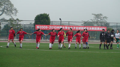 校女足代表队同来自全国各地12支队伍(北京、山东、重庆、四川、贵州、河北、河南、江苏、江西、湖北等),云集珠海市。经过近10天的激烈角逐,我校女足代表队以四胜二平一负的战绩获得2009--2010年中国大学生女子足球联赛总决赛甲组的亚军。决赛中,我院宋述财副书记也亲临现场督战,为女足队员加油打气。