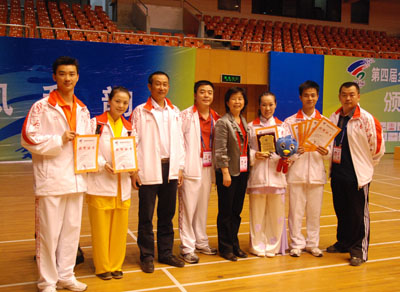 第四届体育大会于5月16日至5月30日在安徽举合肥行,我校承担了广东代表团健身气功比赛任务,广东健身气功队由黄国豪院长任领队,李兆伟老师任教练。四年一届的全国体育大会和全国运会是我国两个非常重要的综合性运动会,经过全国各地健身气功高手的激烈的角逐,我校武术队刘艳君同学不负众望,为广东省代表团获得1枚金牌和1个第四名,该枚金牌是广东省健身气功项目在全国体育大会上的首枚金牌。此外,李遗敬同学获三等奖,集体八段锦,易筋经并分别获得三等奖。为广东代表团取得金牌、总分第一做出了贡献,为学校争得了荣誉!