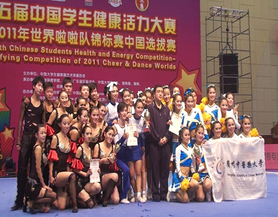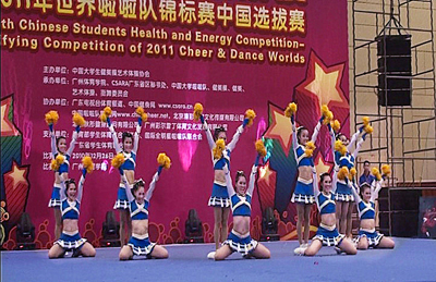 日前,我校健美操队和啦啦队参加了第五届中国学生健康活力大赛暨2011年世界啦啦队锦标赛中国选拔赛。经过全队上下共同努力、顽强拼搏,我校取得了舞蹈啦啦队花球五级难度组的冠军、竞技健身混合双人操第3名和竞技健身六人操第6名的好成绩。同时,舞蹈啦啦队获得了参加2011年在美国奥兰多迪士尼举行的世界啦啦队锦标赛资格。本届比赛共有来自全国116所学校,2064名运动员参加。