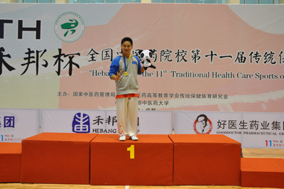 由国家中医药管理局、全国中医药高等教育学会传统保健体育研究会主办,成都医药大学承办的全国中医药院校第十一届传统保健体育运动会比赛于9月22日—27日在四川成都中医药大学体育馆举行,本次比赛共设男女31个项目,面对今年的传运盛会,各校均派出了强大阵容,共有28支队伍参加角逐。经过6天激烈的竞争,共有七枚金牌被我校收入囊中。我校由体育健康学院潘华山院长、李兆伟副院长带队,派出12名运动员参加本次比赛,武术健儿们在赛场上奋勇拼搏,最终获此殊荣。