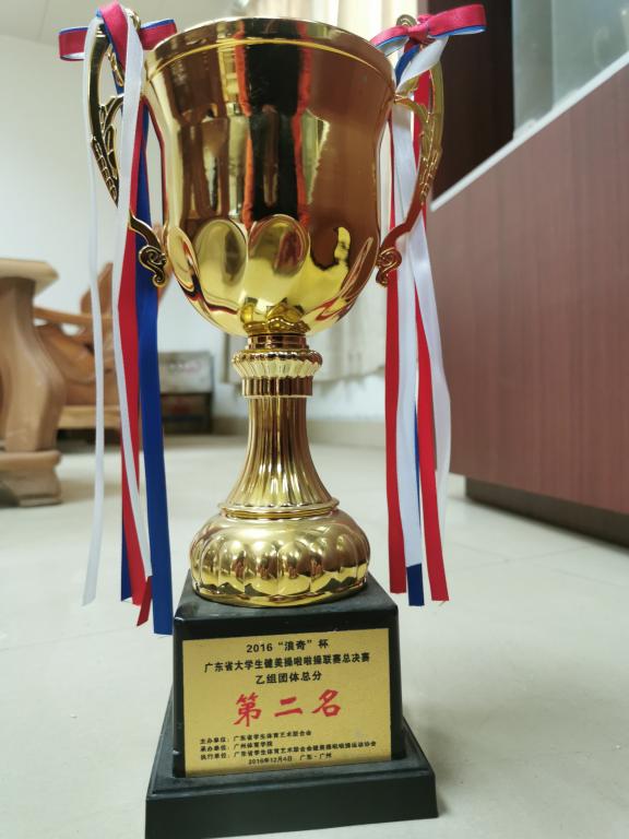 广东省学生体育艺术联合会主办、广州体育学院承办、广东省学生体育艺术联合会健美操啦啦操运动协会共同举办2016年广东省健美操啦啦操总决赛。我校荣获团体第二名。