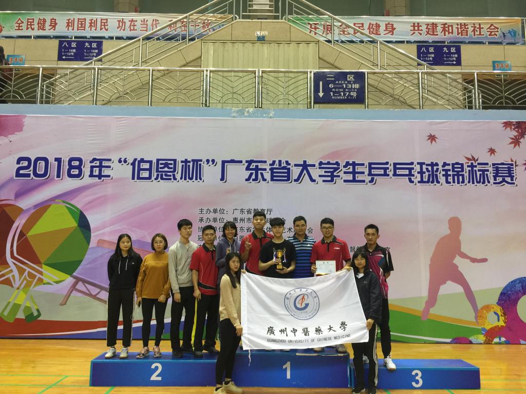 11月22日至11月25日广东省大学生锦标赛在广东省惠州市举行,我校派出11名学生参加比赛。在体育健康学院潘华山、陈月斌两位教练员指导下,经过学生的奋力拼搏,获得铜牌一枚,第七名第八名各一名,总分团体第七名的好成绩。潘华山、陈月斌两位教练员荣获2018年广东省大学生乒乓球锦标赛“优秀教练员”称号。