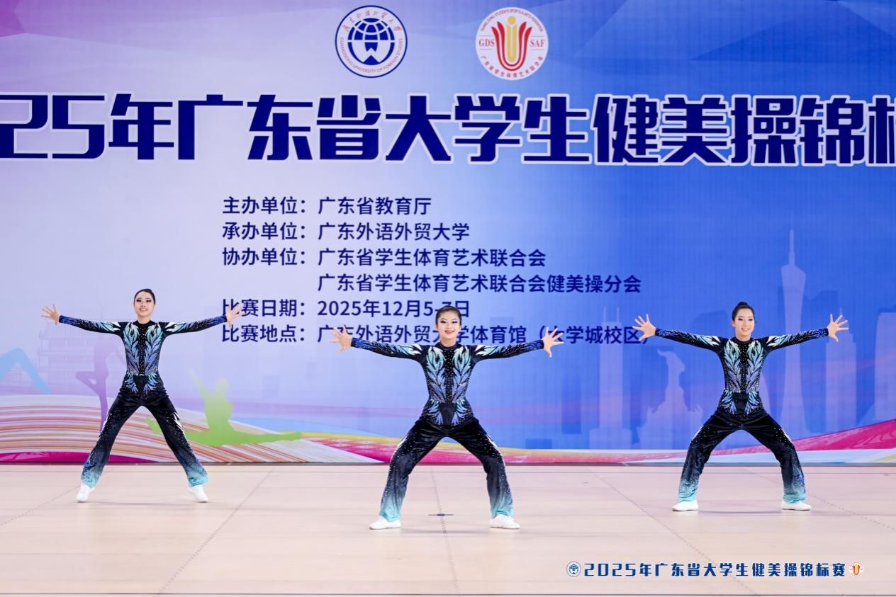 12月5日至7日,广东省大学生健美操锦标赛在广东外语外贸大学圆满落幕。我校健美操队在领队体育健康学院李兆伟院长的带领,以及庞贤妹、郭歌两位教练的专业指导下,凭借扎实的功底与出色的表现力,在赛场上屡创佳绩,为校争光。